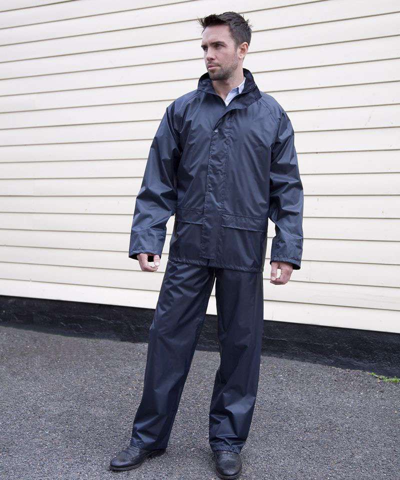 A budget-friendly promotional wear waterproof suit.