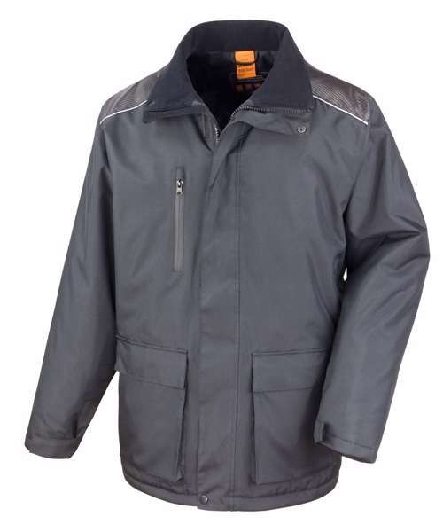 Full front heavy 2-way zip. Stud and tear release front storm flap. Zip-off adjustable hood. Adjustable shockcord hem. Front patch pockets with tear release close and side handwarmer entry, inside and outside chest pockets. Fully taped seams. Tear release external cuff with inner rib storm cuff. Reflective piping detail. Diamond quilted lining. Dobby design contrast panelling. Interchangeable pull system on all zips. Hangtag. Soft feel tricot lined collar.Decoration Guide:Decorating methods: Embroidery & Transfer print. Decorators access point: Inside left chest & lower back.