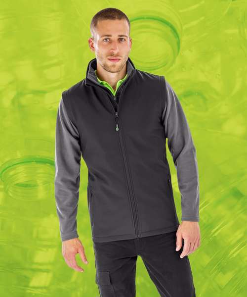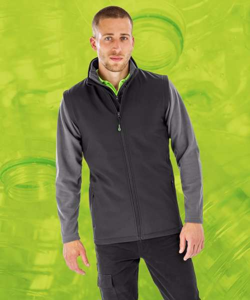 Affordable, recycled, lighter-weight softshell gilet, ideal for all decoration types and budgets, made from a recycled equivalent to conventional yarns. Soft feel fabric with really superior handle.