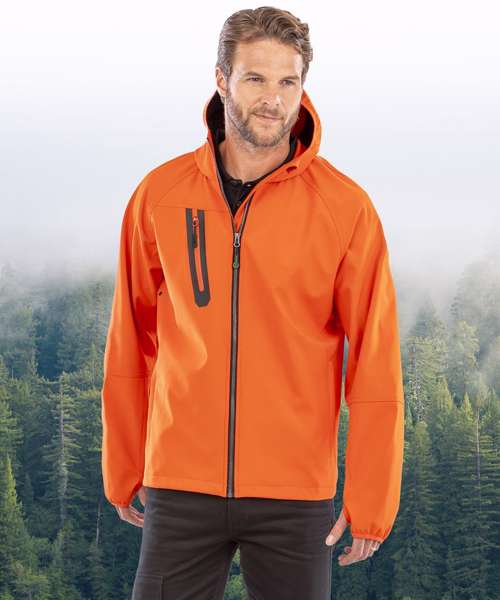 Amazing, soft-feel, hooded unisex softshell jacket with appealing lightweight drape. Ideal for printing.