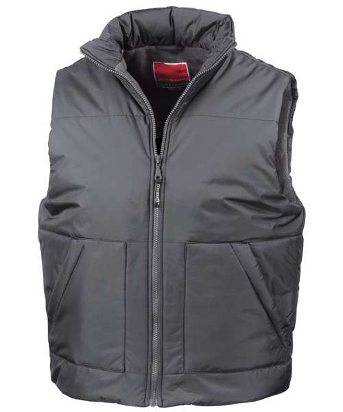 Outer: 100% 210D channel quilted polyester. Insulation: 135gsm 100% Polyester. Lining: 280gsm Dark Grey Active Fleece by Result®. Insulation: 135gsm 100% Polyester. Lining: 280gsm Dark Grey active fleece by Result®