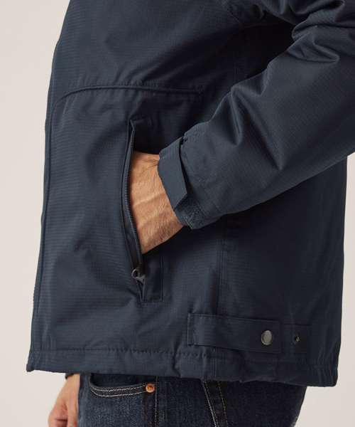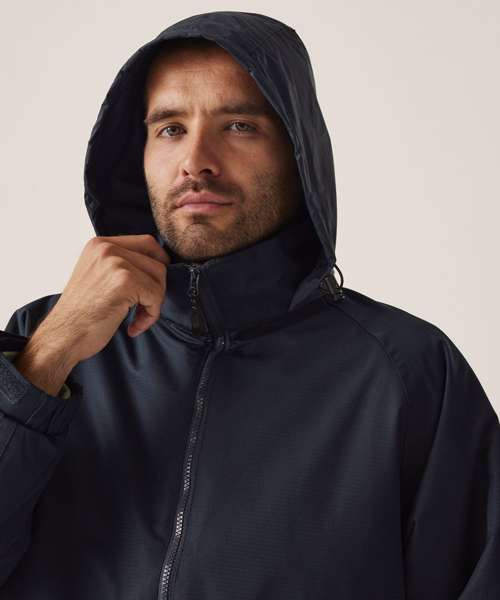 Waterproof Hydrafort polyester matrix dobby fabric with windproof fabric. 200 series anti-pill symmetry fleece lining with taped seams and fleece lined collar. Concealed hood with adjuster. Hook and loop fastening adjustable cuffs. Mobile phone pocket and 2 zipped lower pockets. Studded side adjusters and adjustable shockcord hem. Embroidery access. Thermoguard insulation to sleeves.