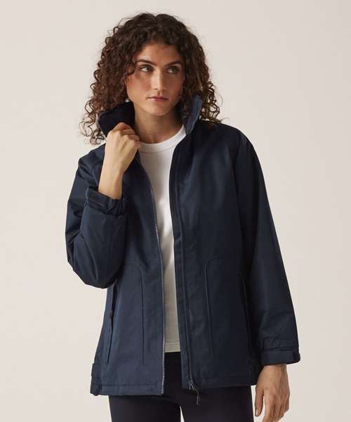 When client meetings take place in the great outdoors, you'll need the smart Hudson jacket for full protection. The waterproof jacket comes with a fleece lining to trap in warmth. Wind won't get a look in with windproof fabric and taped seams. A shockcord hem and adjustable cuffs help to tailor the jacket to your fit. The women's jacket comes in a shaped design for a flattering fit.