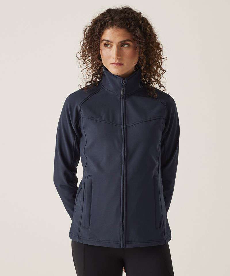 Opt for styled protection with the Uproar interactive softshell. The Uproar is made with warm-backed Softshell fabric that's super-soft to handle. The fabric comes with a natural stretch, keeping you comfortable. It also has a water-repellent finish, perfect for rain fall. The shaped fit provides a flattering style.