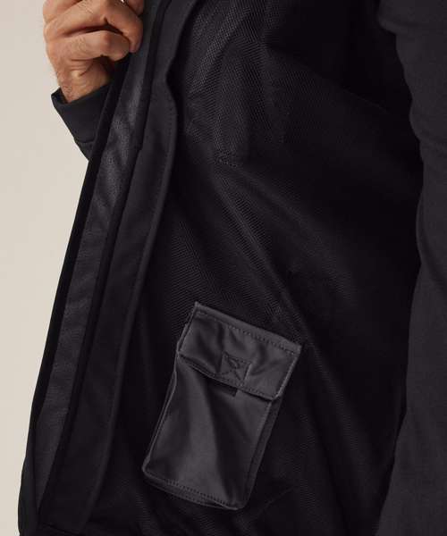 Textured ripstop shoulder panels. Wind resistant membrane fabric polyester mesh lining. ATL durable water repellent finish. Inner zip guard. Foldaway wraparound lined hood with adjuster. Adjustable cuffs. 2 zipped lower and 1 chest pocket. Inner zipped security pocket. Inner mobile phone pocket. Adjustable shockcord hem.