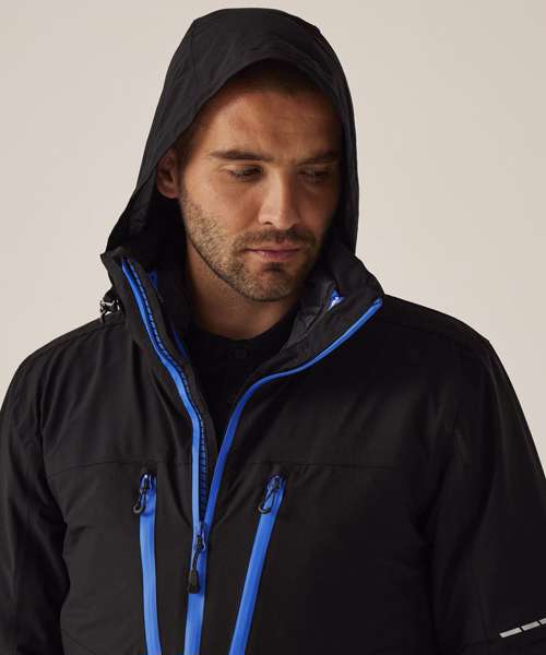 Waterproof and breathable Isotex 10,000 Stretch Ripstop fabric on outer garment, conforms to EN343 3:2, sealed seams and a DWR (Durable water-repellent) finish for all-weather protection. RFID protection on the chest pockets for added security, and fully Insulated inner jacket with Thermo-reflect lining panel for heat retention. Packaway hood that conceals away into collar, 2 zipped lower pockets and 2 zipped waterproof chest pockets. Waterproof centre front zip. Concealed zip in lining for embroidery access, and shock cord adjusters at face and hem. Reflective details on sleeves and back. .