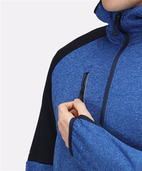 Warm backed marl knit fleece with extol stretch sides, hood and underarm panels. RFID protection on the chest pocket for added security. Grown on hood and stretch binding to hood opening, hem and thumbhole design cuffs. 2 zipped lower pockets and 1 zipped chest pocket, with chin guard and reflective details. .