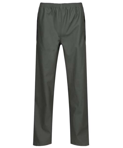 Highly breathable waterproof and windproof PU-coated fabric. Comfortable and lightweight tricot knit backing. Elasticated waist and adjustable hem with press studs. 2 side pocket openings. Reach certified. Ethical Trading Initiative certified.