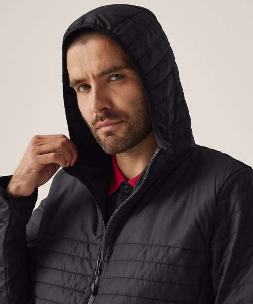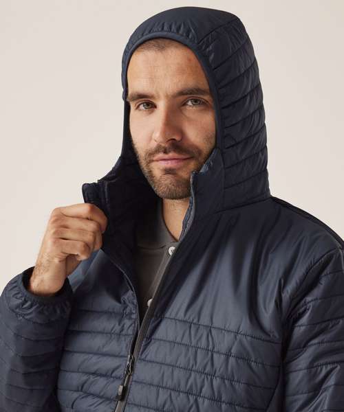 100% Recycled polyester interest face fabric with water-repellent cire finish. Recycled Thermoguard 180gsm insulation, and recycled polyester lining. Stretch binding to cuffs, hood and hem. 2 zipped lower pockets. Easily compressible.