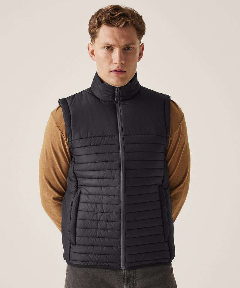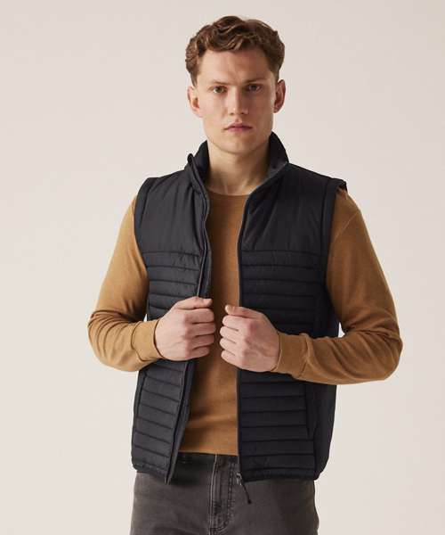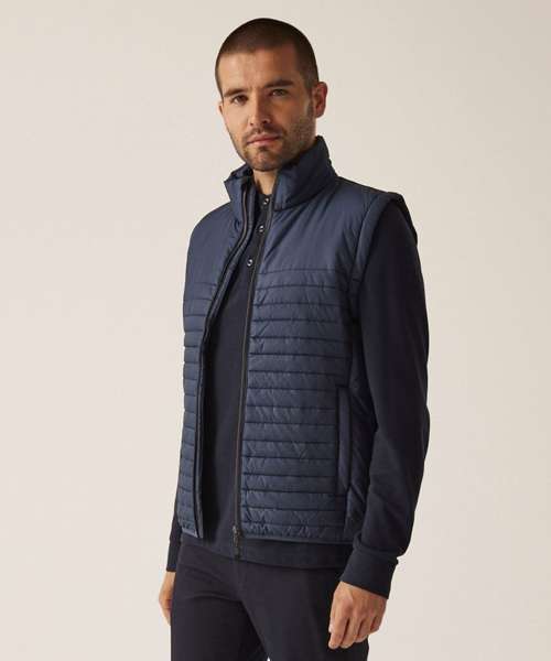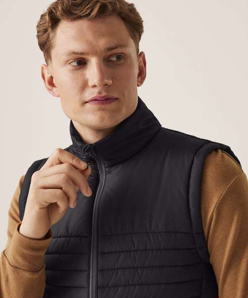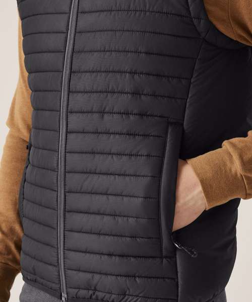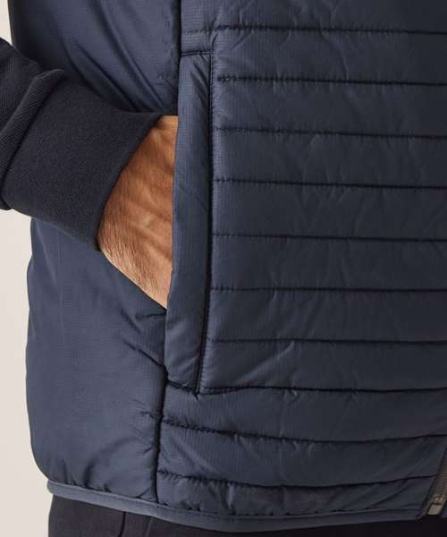100% Recycled polyester interest face fabric with water-repellent cire finish. Recycled Thermoguard 160gsm insulation, and recycled polyester lining. Stretch binding to hem. 2 zipped lower pockets. Easily compressible. .