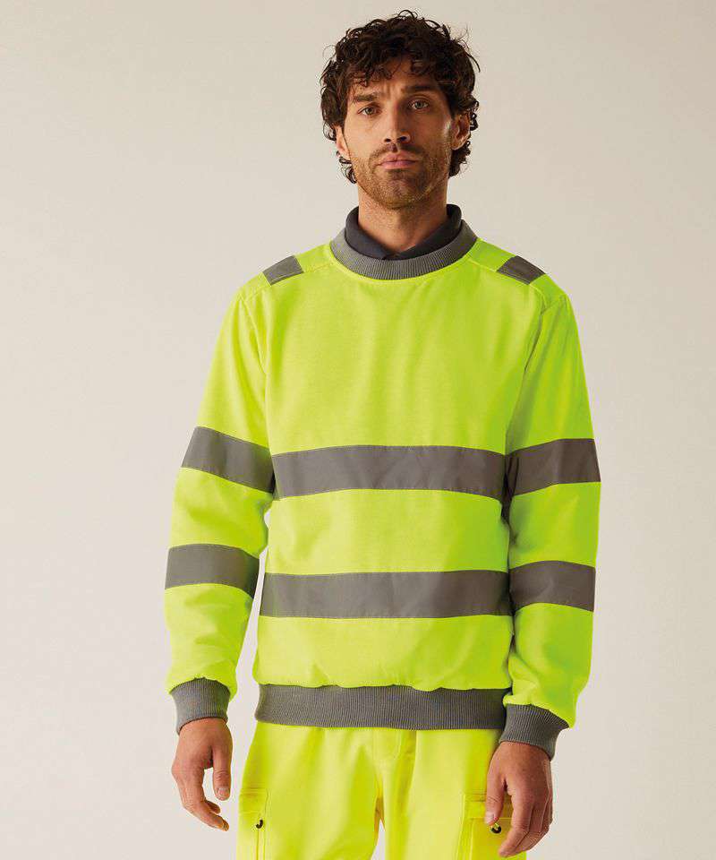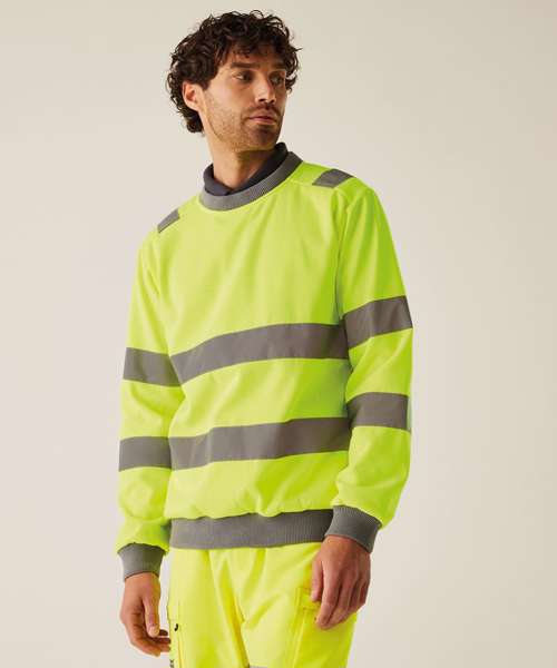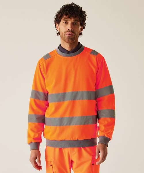 The Hi-vis Pro contract crew neck sweatshirt, from Regatta Professional, delivers comfort, visibility and durability on the job. It’s made from brushed polyester fleece and features a classic crew neck and ribbed trims. Certified for safety.