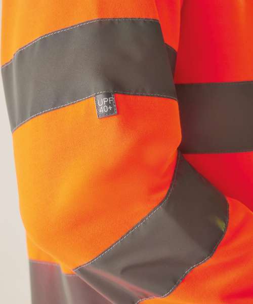 100% Polyester brushed-back fleece fabric, 280gsm. Certified to EN ISO 20471:2013 A1:2016 Class 3. Orange colourway is also certified to RIS-3279-TOM. Ribbed collar, hem and cuffs. Crew neck. Contains recycled polyester.
