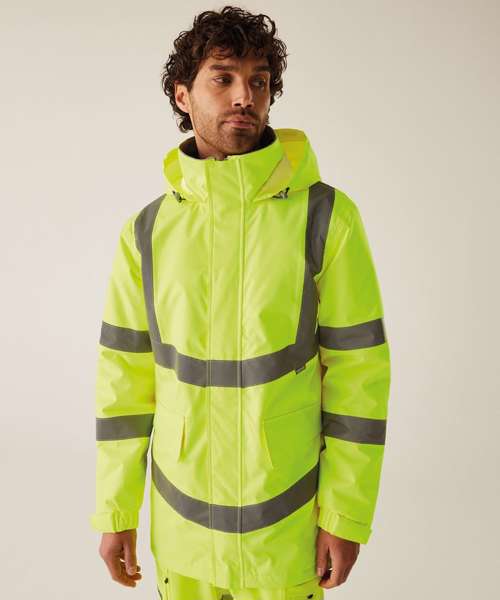 The Hi-vis Pro contract Dover parka, from Regatta Professional, offers reliable waterproof protection and thermal performance for demanding work environments. Made with waterproof Hydrafort polyester, this jacket comes with Thermoguard insulation, plus a pack-away hood, and is certified for safety.