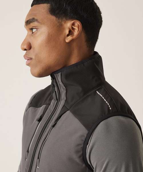 The stretch 3-layer softshell bodywarmer, from Regatta Professional, provides a durable, protective and stylish work layer. It’s constructed from resilient Softshell XPT fabric – so it not only repels water effectively, but also stands up to the rigours of manual labour. Stretch fabric ensures unparalleled freedom of movement, adapting seamlessly to the dynamics of your working day. The bodywarmer is finished with on-trend branding details on the zip pulls.