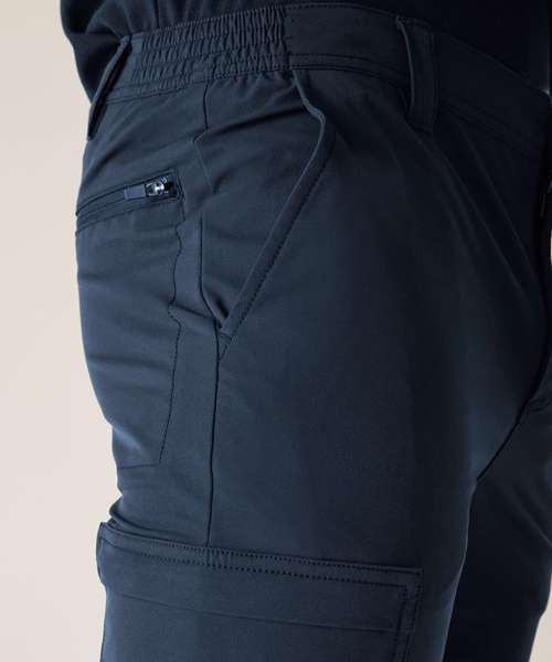 Woven stretch fabric with a DWR (durable water-repellent) finish. Part-elasticated waist. Two rear pockets. Two front pockets. Lower-leg cargo pocket. Shank button at the waist for extra strength. Strategic seams with triple stitching. Extendable hem offering a choice of leg lengths. Contains recycled polyester.