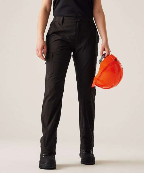 The Women’s Pro action stretch trousers, from Regatta Professional, are built for comfort and movement. They feature a water-repellent stretch fabric and come with triple-stitched seams for durability and an extendable hem for flexible leg length. Finished in a reliable, feminine fit.