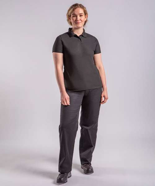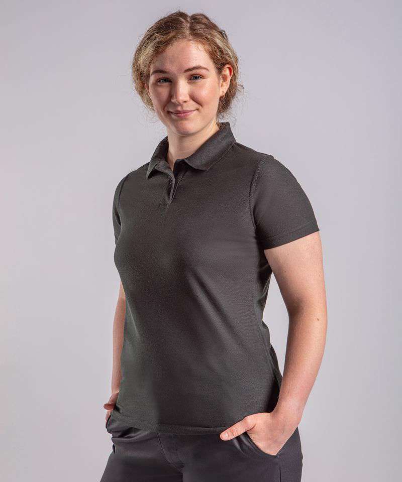 The Pro polyester polo is fashioned from a piqué knit, featuring twin-needle stitching for added durability, ribbed self-coloured collar and taped neck, with a 2 self-coloured button placket. It provides a modern and feminine fit.