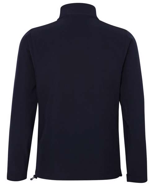 Two layer bonded softshell jacket with full zip front fastening. Relaxed fit. Two front zipped side pockets. Chin guard with internal storm flap. Adjustable shockcord hem.