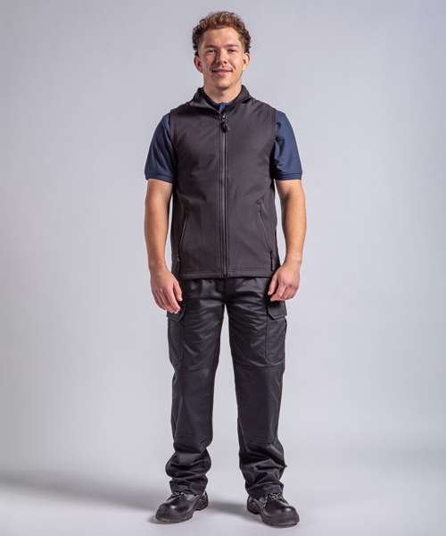 An extra layer for keeping warm outdoors, the softshell gilet features full-front zip fastening and handy front zipped hand pockets. The shell of the gilet will keep you warm and dry due to the windproof and showerproof properties.