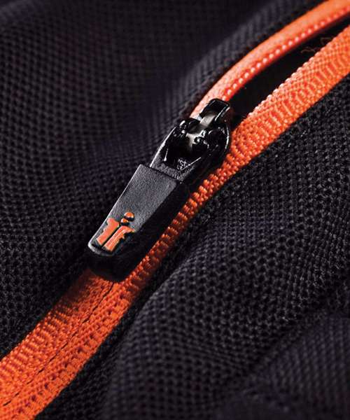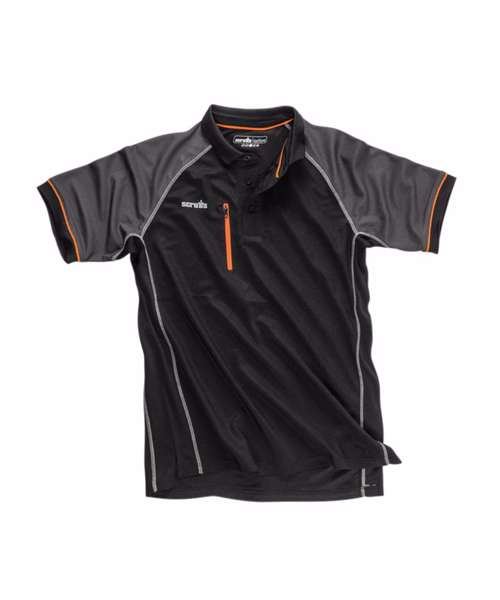Slim-fitting work polo shirt with raglan sleeve. Lightweight, quick-drying fabric. Mesh panels. Zipped chest pocket for secure storage. Dipped back hem for better coverage when working.