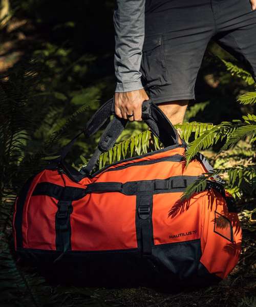 This large-capacity gear bag is designed for maximum performance with less weight. The Nautilus waterproof 70 litre duffle is made with reinforced 100% waterproof fabric for durabilty without bulk. As a convertible duffle and backpack, it has strategically placed handles for every carrying application, plus a full-size zipped shoe pocket. Reinforced nylon panels at the top and bottom are designed to resist abrasion and extend the life of this duffle.