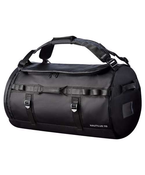 This extra-large-capacity gear bag is designed for maximum performance with less weight. The Nautilus waterproof 110 litre duffle is made with reinforced 100% waterproof fabric for durabilty without bulk. As a convertible duffle and backpack, it has strategically placed handles for every carrying application, plus a full-size zipped shoe pocket. Reinforced nylon panels at the top and bottom are designed to resist abrasion and extend the life of this duffle.