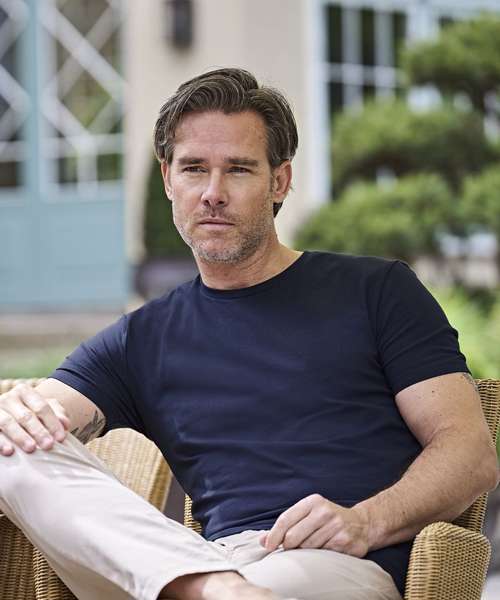 Two-layer collar with elastane. Double pre-shrunk. Double stitched. Long-fibre cotton. Enzyme-washed. Silicone treatment. Full-feeder elastane. Shoulder-to-shoulder taping.