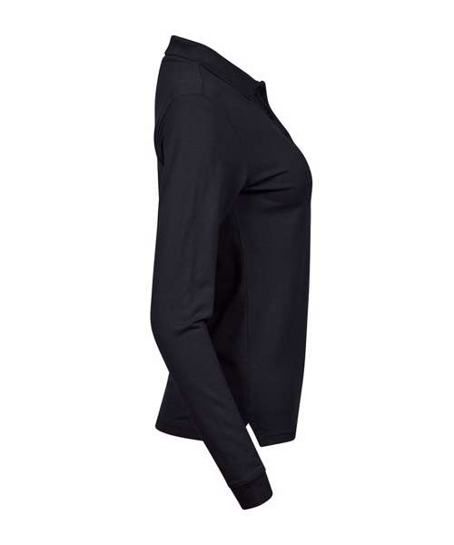 The Women’s luxury stretch long sleeve polo is made from a certified organic cotton/elastane fabric that provides excellent comfort and a perfectly tailored fit, with mini piqué fabric and a flat knit collar with elastane. The sleeves are finished with low-cut cuffs with elastane.