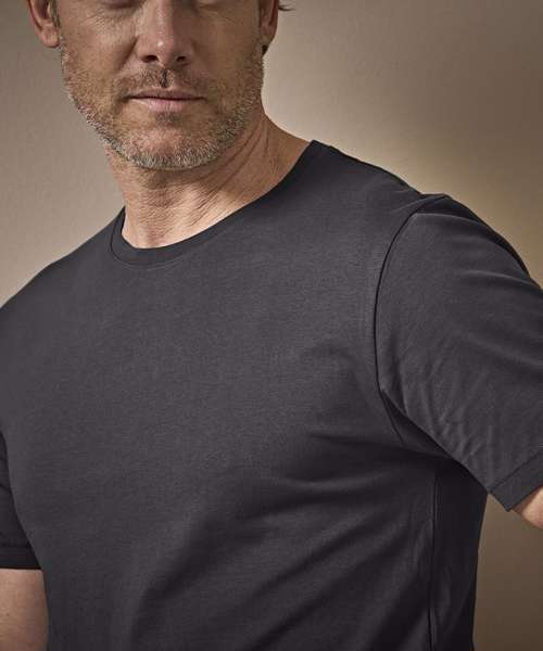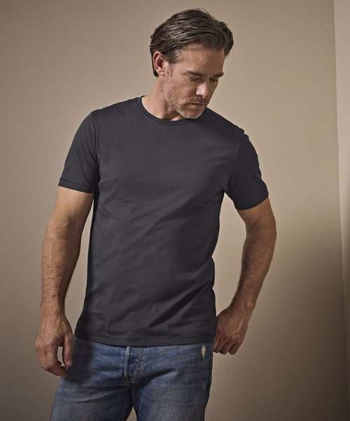 Tailored fit. Shoulder-to-shoulder neck tape. Double pre-shrunk. Double stitched. Long-fibre cotton. Enzyme-washed. Silicone treatment. Certified organic cotton.