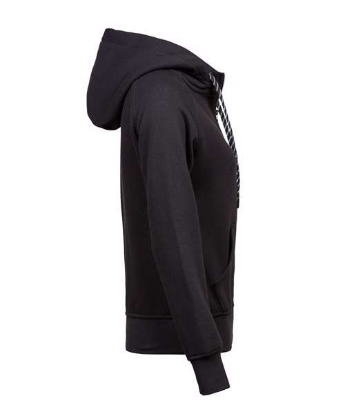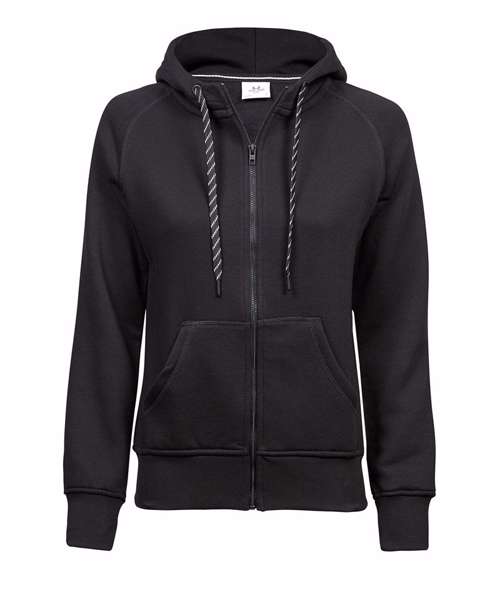 The Women’s fashion full-zip hoodie has a shaped fit. Contrast strings and neckband add a stylish touch to a garment which features elastic cuffs and waistband.