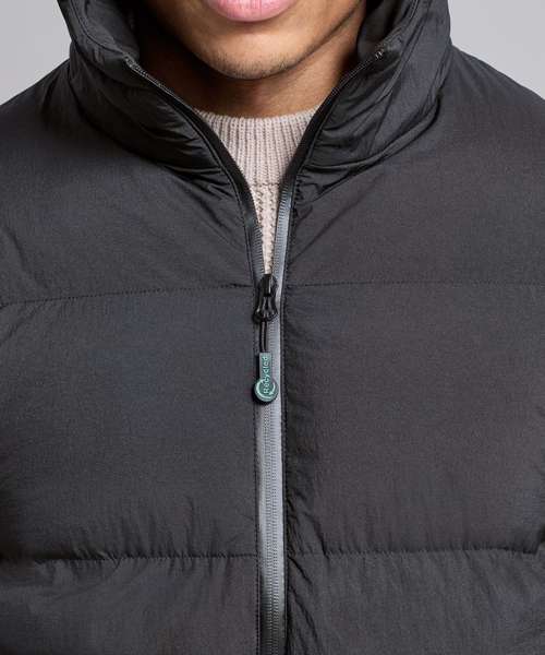 Made with 100% recycled materials. Bonded full-length zip. Chin guard. internal rib knit cuffs. Bonded zip detailing. Three-panelled hood with adjustable toggles. Two bonded zip side pockets. One internal pocket. Square back neck buggy. Removable recycled zip pull.